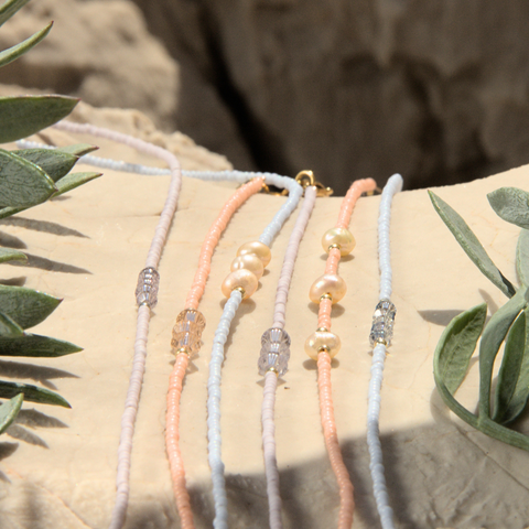 Wir verwenden nur die besten Glasperlen von Miyuki und recycelte Süßwasserperlen, die ihre Farbe und ihren Glanz über viele Jahre behalten. Jeder Bestandteil unserer Sets wird sorgfältig ausgewählt und im Vorfeld getestet, um dir die beste Qualität und Langlebigkeit zu garantieren.